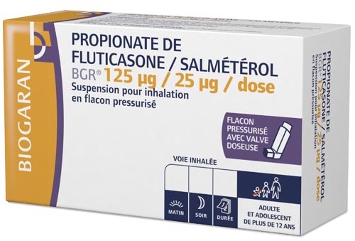PROPIONATE DE FLUTICASONE/SALMETEROL BGR 125 microgrammes/25 microgrammes/dose, suspension pour inhalation en flacon pressurisé